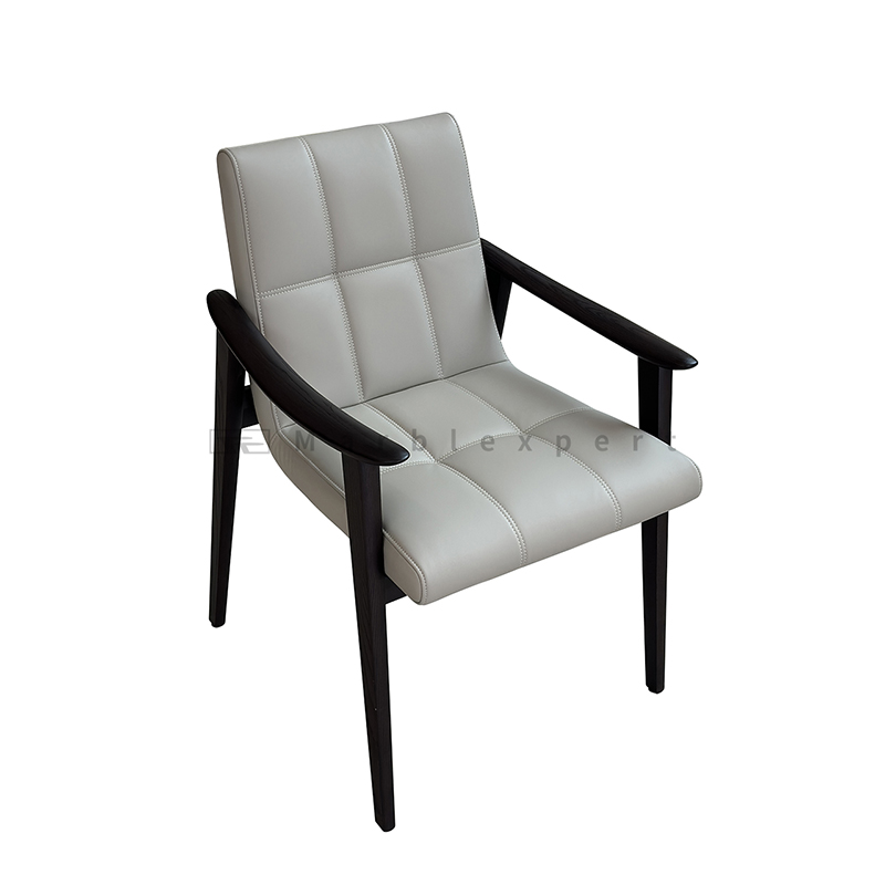 The light gray tone is soft and low-key luxurious, and the grid stitching technique makes the upholstery more three-dimensional and exquisite; the moked ash bentwood frame has a warm and retro wood grain texture, creating a balance between warm and coo tones with the light gray upholstery. The overall style is suitable for diverse spaces such as modern light luxury and minimalist retro, and can be a texture highlight in both home dining rooms and hotel private rooms.