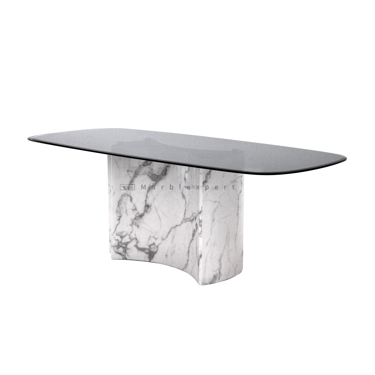 Spacious Illusion and Effortless Practicality: The use of a grey glass surface offers a significant functional advantage: the creation of visual space. The transparent nature of the material allows light to pass through, making it an ideal choice for smaller dining rooms or open-plan areas where maintaining a sense of airflow and openness is crucial. The table does not visually clutter the room. Furthermore, the glass surface is remarkably practical; it is resistant to stains and heat, and cleaning is a simple task. When paired with the durable, low-maintenance stone base, this dining table becomes a preferred choice for modern living, offering a perfect balance of stunning aesthetics and easy, everyday functionality.