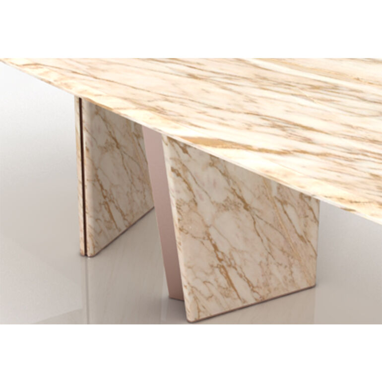The foundation of this remarkable piece begins with natural marble, celebrated for its dense structure, high hardness, and inherent good rigidity. These exceptional material properties provide the table with outstanding compressive strength, remarkable wear resistance, and unparalleled decorative qualities. The marble tabletop features precisely bevelled edges that catch and refract light, creating a dynamic visual experience throughout the day. Beneath this majestic surface, a lacquered wood underboard introduces warmth and depth, while the polished and curved stainless steel base with concave external surfaces made of curved and polished marble represents a breakthrough in furniture design. This minimalist approach doesn't simplify but rather concentrates on highlighting quality details, allowing each material to speak with clarity and purpose.