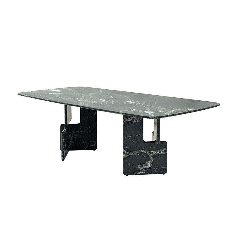 A Unique Focal Point with Striking Geometric Architecture: The most significant advantage of this marble dining table is its ability to transform a room's ambiance through its base design. The two sets of geometric-shaped supporting bodies are a radical departure from traditional pedestal or four-leg configurations. This architectural approach injects a strong, modern form into the space, ensuring the table commands attention from every angle. The clean lines and minimalist color tone of the lacquered wood prevent the design from feeling overly complex, instead offering a sculptural integrity that makes the dining table a functional work of art and the heart of your dining room's decor.