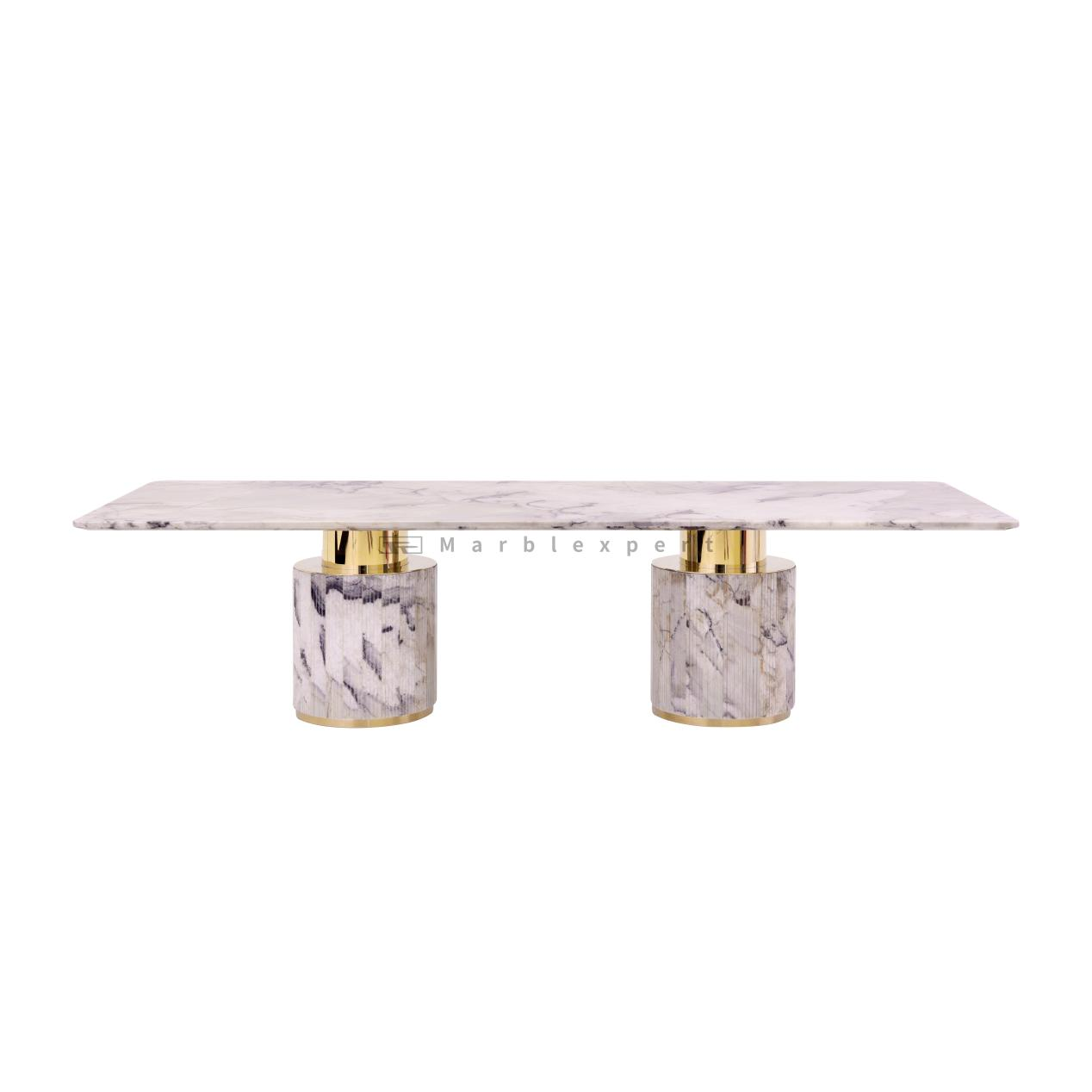 Exceptional Craftsmanship Ensures Lasting Durability and Stability: Built to be a cherished heirloom, this table exemplifies superior construction. The natural stone table top is not only chosen for its beauty but also for its inherent durability, resistant to scratches and heat. The precision-cut beveled edges are a mark of high-end fabrication, showcasing a attention to detail that elevates the entire piece. The sturdy wooden underside is a critical, though often overlooked, feature that ensures a flawless and stable connection between the heavy stone and the metal base, preventing shifting and wobbling. The polished base is finished to a resilient, high-luster sheen that is designed to maintain its luxurious appearance over years of use.