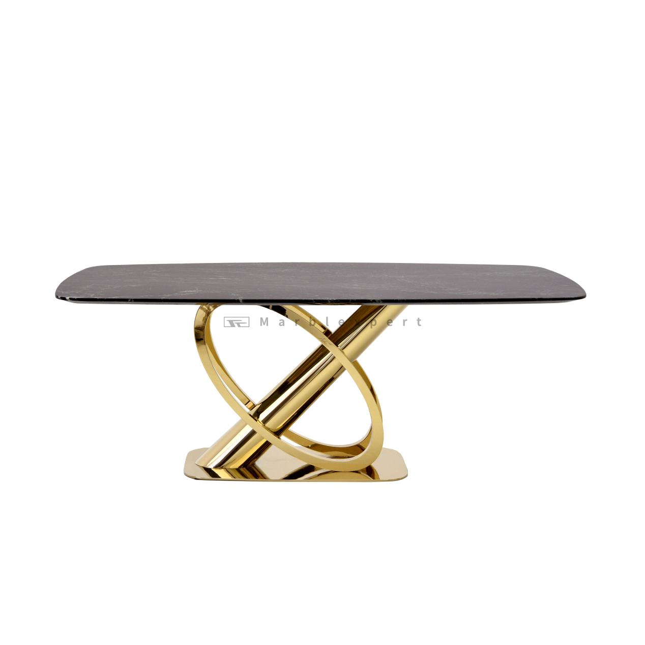 In a Residential Dining Room, this table naturally becomes the epicenter of home life. It provides a majestic surface for everything from intimate family dinners to large-scale entertaining. The durable, easy-to-clean stone surface is perfectly practical for daily use, while its luxurious appearance makes every meal feel special. To highlight its beauty, pair it with upholstered dining chairs in neutral tones like cream, grey, or charcoal. For a more dramatic effect, select chairs with velvet upholstery in a complementary jewel tone like sapphire blue or amethyst. The Mirror-gold accents offer a perfect opportunity to coordinate with gold or brass light fixtures, creating a cohesive and intentionally designed space that exudes understated elegance.