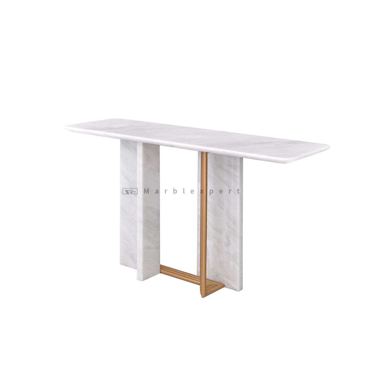 Exceptional Craftsmanship and Structural Integrity: The integration of marble and metal requires a superior level of craftsmanship, which is evident in every detail of this console table. The connection where the marble and gold metal elements meet is executed with flawless precision, ensuring a seamless and robust union. The marble components are polished to highlight their delicate texture, while the gold metal is finished to a luxurious, durable luster that resists tarnishing. This console table is not just a decorative object; it is built to last. The substantial weight of the marble, combined with the rigid support of the metal framework, results in a piece that is exceptionally stable, wobble-free, and designed to be a lasting heirloom.