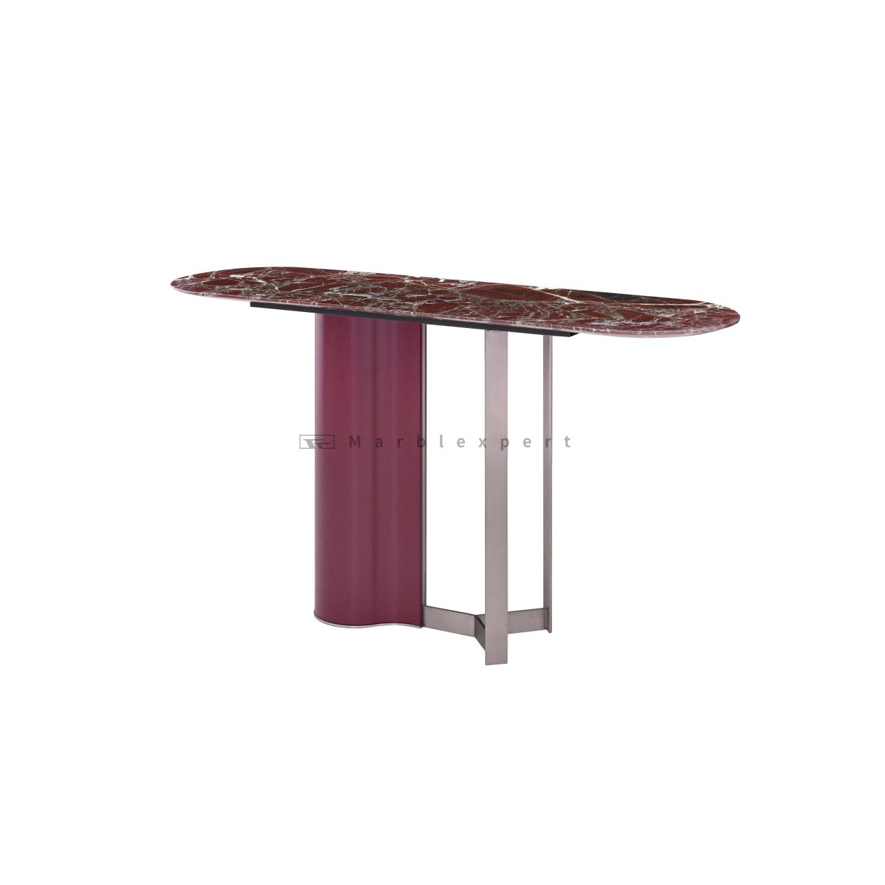 Opulent Natural Beauty with Gorgeous Burgundy Textures: The burgundy marble tabletop is the soul of this console table, delivering an level of opulence that is both deep and inviting. Marble is celebrated for its gorgeous textures, and in this rich burgundy hue, the veining is particularly dramatic and artistic. This natural, unrepeatable pattern ensures your console table is an exclusive statement piece, bringing a touch of organic, high-end luxury into your home. The warm, wine-colored base of the stone adds a sense of depth and warmth that is both visually stimulating and cozy, making it a far cry from cold, sterile surfaces. It is a natural masterpiece that serves as the cornerstone of your room's decor.